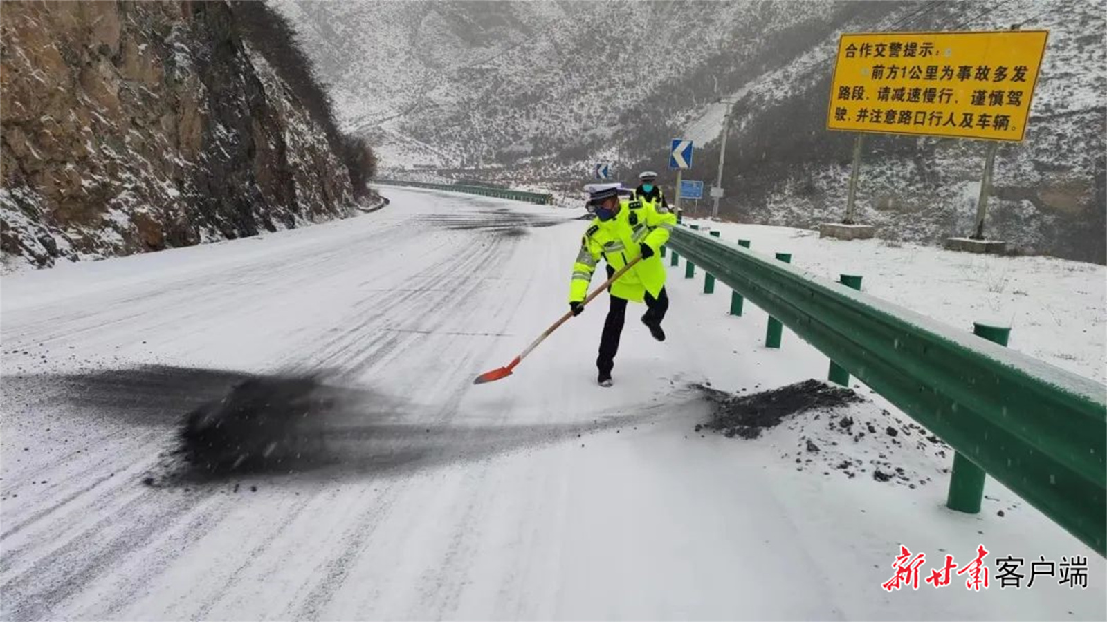新甘肅客戶端訊(新甘肅·每日甘肅網(wǎng)記者 萬及敏)2月8日上午,甘肅多地出現(xiàn)降雪天氣,部分道路出現(xiàn)積雪結(jié)冰現(xiàn)象。為最大限度保障群眾出行安全,預(yù)防和減少道路交通事故的發(fā)生,全省公安機(jī)關(guān)1.2萬公安民輔警奮戰(zhàn)一線,加大重點路段巡邏管控力度,采取預(yù)警提示、除冰、引導(dǎo)車輛減速慢行、封閉道路、幫助群眾推車等措施,嚴(yán)防交通事故發(fā)生,為群眾的平安出行保駕護(hù)航。