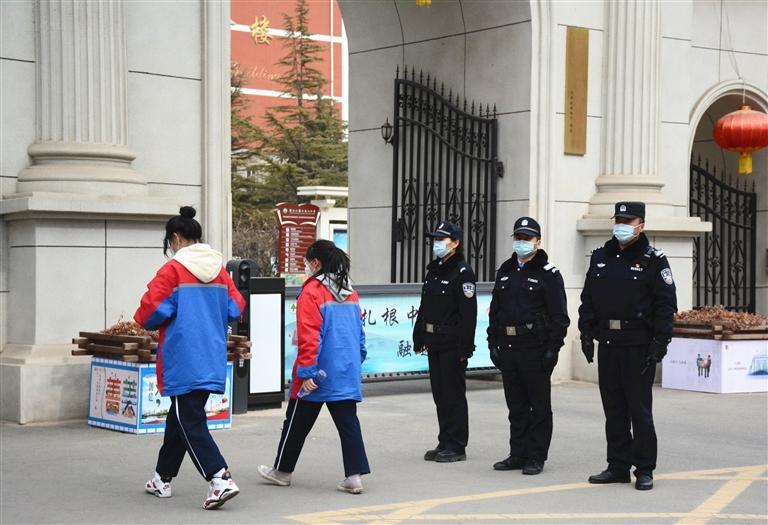 派出所民警在校園門口執(zhí)勤(蘭州日報(bào)供圖)