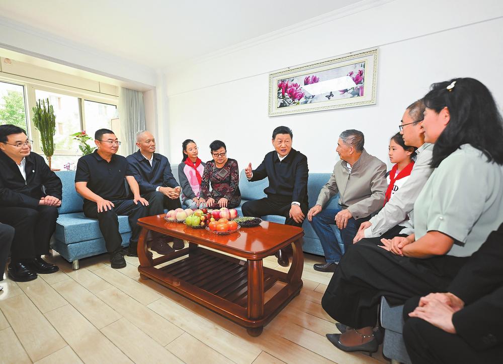 9月10日至13日,中共中央總書記、國家主席、中央軍委主席習(xí)近平在甘肅考察。這是11日下午,習(xí)近平在蘭州市安寧區(qū)棗林西社區(qū)考察時,同退休老黨員李宗彪一家人圍坐在一起拉家常。新華社記者燕雁