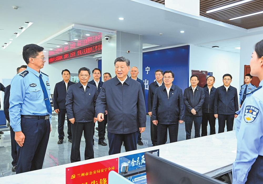 9月10日至13日,中共中央總書記、國家主席、中央軍委主席習(xí)近平在甘肅考察。這是11日下午,習(xí)近平在蘭州市公安局安寧分局劉家堡派出所考察。新華社記者燕雁