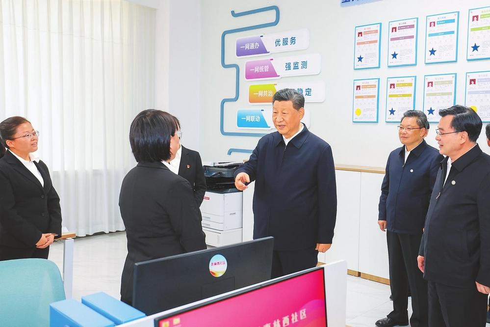 9月10日至13日,中共中央總書記、國家主席、中央軍委主席習(xí)近平在甘肅考察。這是11日下午,習(xí)近平在蘭州市安寧區(qū)棗林西社區(qū)黨群服務(wù)中心考察。新華社記者王曄