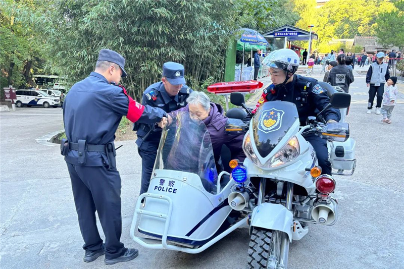 10月2日,一名陜西渭南游客向麥積山大景區(qū)派出所求助說(shuō),其母親由于年紀(jì)較大,已經(jīng)走不動(dòng)了,需下山前往酒店休息,希望民警幫忙聯(lián)系車輛。隨后,旅游警察用警用摩托車送老人下山,安全到達(dá)山下停車場(chǎng)。