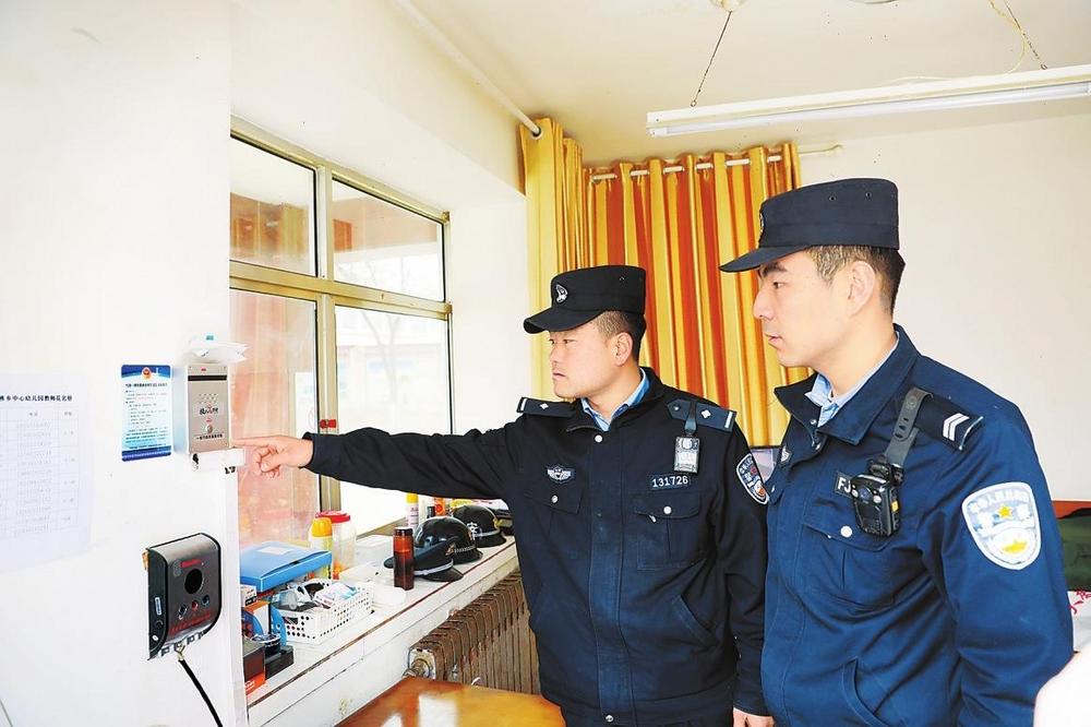 民警檢查學(xué)校安全設(shè)施。2月19日,平?jīng)鍪泄簿轴轻挤志执笄嘏沙鏊窬哌M(jìn)大秦鄉(xiāng)中心小學(xué)檢查校園安防設(shè)施配備及安全通道,護(hù)航新學(xué)季。 新甘肅·甘肅法治報(bào)通訊員鄧博攝