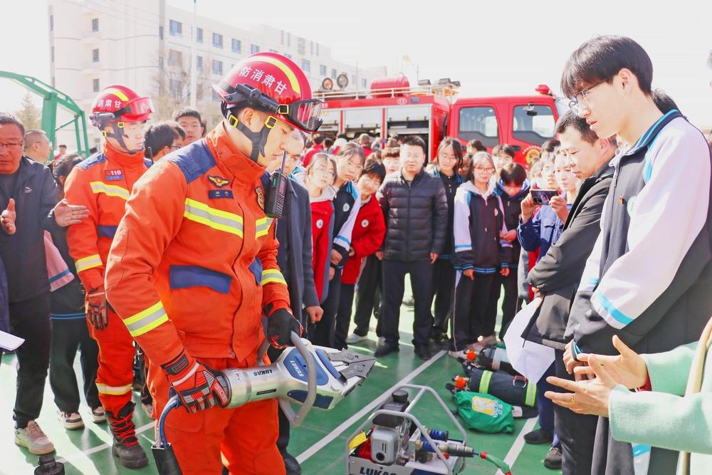 消防安全進(jìn)校園活動(dòng)現(xiàn)場(chǎng)。武威消防救援支隊(duì)供圖