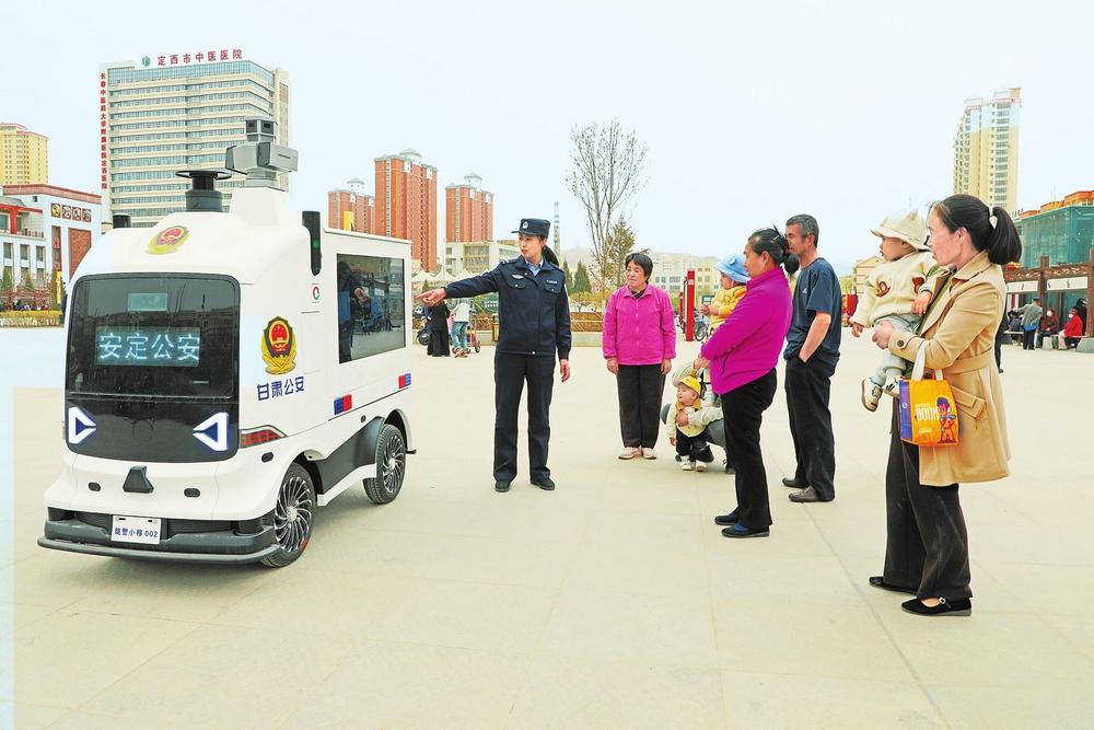 群眾參觀公安智能巡邏車。近日,定西市安定區(qū)許鐵堂廣場上出現(xiàn)一款引人注目的科技產(chǎn)品——智能巡邏車,這是安定公安在現(xiàn)代化警務(wù)建設(shè)中引入的智慧產(chǎn)品,能夠24小時不間斷工作,引發(fā)群眾關(guān)注。 新甘肅·甘肅法治報通訊員楊永剛攝