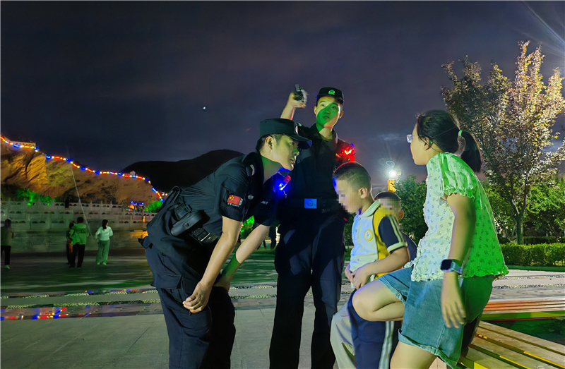 “小朋友,天黑了要注意安全,不要靠近湖邊。”特巡警大隊(duì)將公園廣場(chǎng)等群眾休閑聚集區(qū)域作為巡邏防控的重點(diǎn),民輔警在巡邏過程中一邊提醒玩耍的孩童注意安全,一邊向周邊群眾了解治安情況,同時(shí)主動(dòng)詢問跳廣場(chǎng)舞的群眾是否存在噪音擾民等問題,及時(shí)化解潛在矛盾糾紛。“有你們巡邏,我們帶孩子出來玩都感到很安心!”在公園散步的群眾紛紛表示。