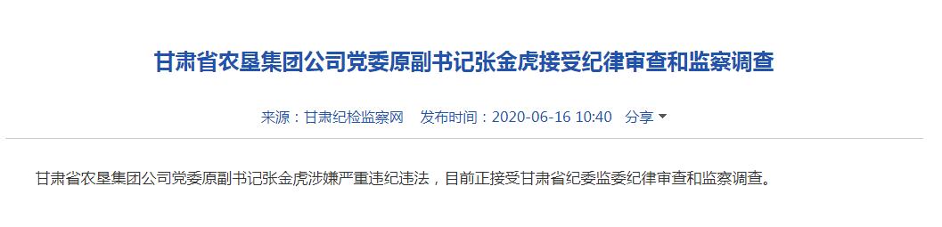 甘肅省農(nóng)墾集團(tuán)公司黨委原副書(shū)記張金虎接受紀(jì)律審查和監(jiān)察調(diào)查