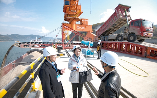 重慶市萬州區(qū)紀(jì)委監(jiān)委圍繞推動(dòng)成渝地區(qū)雙城經(jīng)濟(jì)圈建設(shè)跟進(jìn)監(jiān)督,保障重點(diǎn)工程順利推進(jìn)、廉潔高效。圖為萬州區(qū)紀(jì)檢監(jiān)察干部深入重點(diǎn)水運(yùn)項(xiàng)目新田港現(xiàn)場(chǎng)了解情況。 攝影/冉孟軍(萬州區(qū)紀(jì)委監(jiān)委干部)