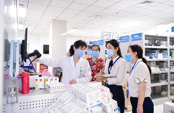 重慶市璧山區(qū)紀委監(jiān)委將整治醫(yī)藥購銷領(lǐng)域腐敗作為“我為群眾辦實事”實踐活動的一項重要內(nèi)容。圖為7月5日,駐區(qū)衛(wèi)生健康委紀檢監(jiān)察組在區(qū)人民醫(yī)院藥房抽查藥品采購、管理等情況。 胡悅建 攝