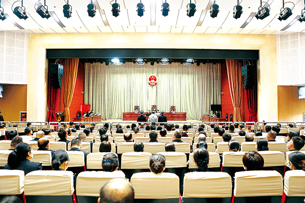 圖為4月21日,蘭州市中級(jí)人民法院開(kāi)庭審理柳豐德受賄、行賄案。 (蘭州市中級(jí)人民法院供圖)