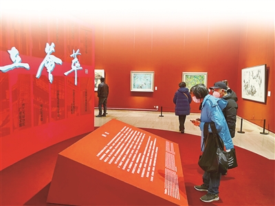 20世紀50年代以后,反映熱火朝天生活的藝術(shù)樣式漸漸成為主流,畫家們開始在傳統(tǒng)筆墨中融入新的風(fēng)格。江蘇省美術(shù)館展廳展出了江蘇藝術(shù)群體“新金陵畫派”的作品。新金陵畫派是20世紀中國畫壇的重要畫派之一,畫家們倡導(dǎo)“思想變了,筆墨就不能不變”的藝術(shù)理念,在繼承傳統(tǒng)的基礎(chǔ)上以新筆墨反映時代的巨大變化。