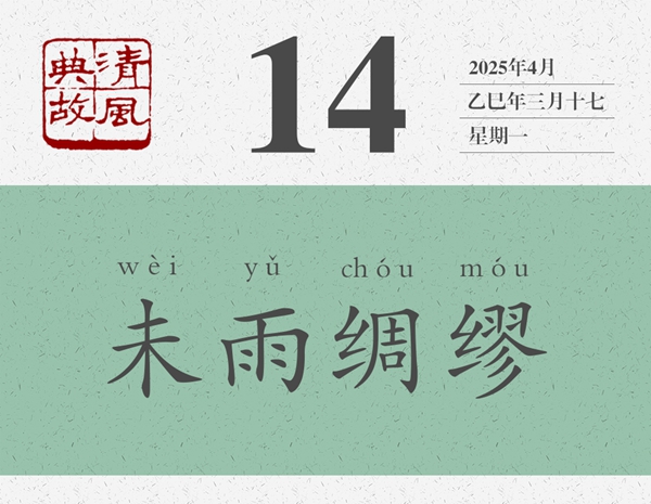 這是一首寓言詩(shī)。一般認(rèn)為,是周武王病故后,弟弟周公旦寫(xiě)給周武王的兒子周成王的誡勉詩(shī)。時(shí)成王幼弱,周公旦以詩(shī)言志,以鳥(niǎo)為喻,表明自己對(duì)周成王的一片苦心,以及對(duì)國(guó)事的一片忠心。“迨天之未陰雨,徹彼桑土,綢繆牖戶(hù)”,便形象地表明了自己的一片苦心。后人遂以“未雨綢繆”為典,比喻凡事都應(yīng)提前做好準(zhǔn)備,以防事到臨頭難以應(yīng)對(duì)?!吨熳蛹矣?xùn)》:“宜未雨而綢繆,毋臨渴而掘井。”