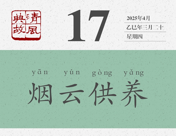 煙云,即山水風(fēng)景。供養(yǎng),即陶冶滋養(yǎng)。“畫中煙云供養(yǎng)”的原意是,黃公望和米友仁之所以貌如童顏,神明不衰,是因?yàn)槠渖剿嬛袩熡隄鳚?、薄霧繚繞的意境滋養(yǎng)了他們。后世即以“煙云供養(yǎng)”為典,喻美好的自然環(huán)境,可以舒暢人的心情,撫慰人的精神。這就是為什么人們把自然環(huán)境好的地方稱作“養(yǎng)生之地”的原因。錢大昕《梁山舟前輩八十》詩:“占得西湖第一峰,煙云供養(yǎng)幾千重。門懸曼碩山舟字,人識(shí)坡公笠屐容。”