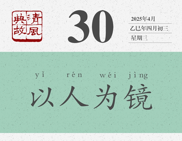 墨子主張“非攻”,所以認(rèn)為好戰(zhàn)必?cái) D右霉耪Z(yǔ)“以人為鏡”的意思是,智伯以強(qiáng)凌弱,以大欺小,最終引火燒身,身敗名裂,應(yīng)該成為“以攻戰(zhàn)為利”者的前車之鑒。后人則以“以人為鏡”為典,比喻可以從別人的成敗得失中吸取經(jīng)驗(yàn)教訓(xùn)。《舊唐書(shū)·魏征傳》:“以銅為鏡,可以正衣冠;以古為鏡,可以知興替;以人為鏡,可以明得失。”