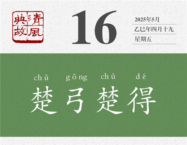 一般情況下,人們只拿楚恭王的話說事,并以“楚弓楚得”為典,比喻利益沒有外流,所以不必糾結,類于俗話所說的“肉爛了都在鍋里”。凡事想開些,固然沒錯;但想得太開了,就有些“啥都無所謂了”的感覺。到了這個地步,也就值得警惕了。