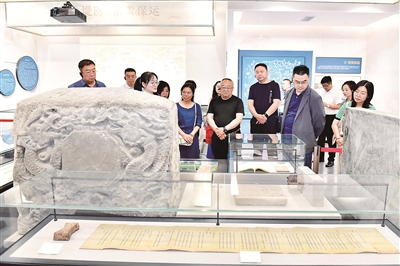 作為溝通中國統(tǒng)一多民族國家浩瀚版圖的水路命脈,中國大運河已成為中國的“活態(tài)文化遺產(chǎn)長廊”。如今,其申遺成功已經(jīng)進入新的十年,運河兩岸各地繼續(xù)在保護、傳承、利用上下功夫,讓古老大運河煥發(fā)時代新風貌。圖為近日,人們在元明清司運治運最高管理機構(gòu)——位于山東濟寧的河道總督署遺址公園展館參觀,了解感悟古人的智慧與擔當。 新華社記者 郭緒雷 攝