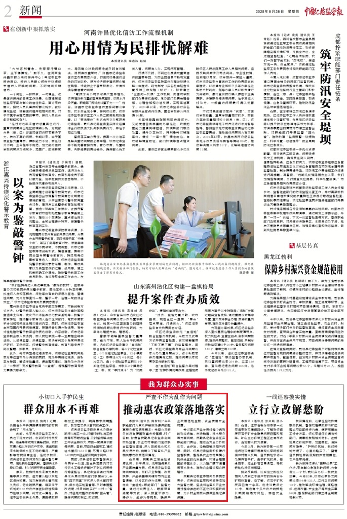 《中國紀(jì)檢監(jiān)察報》2025年8月28日 第2版