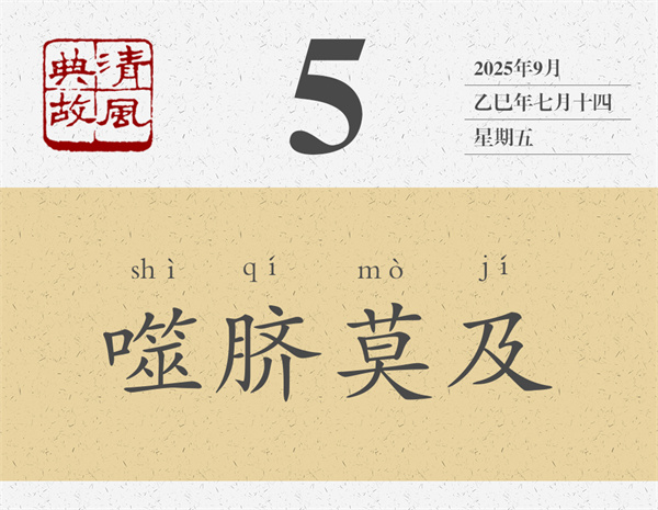 楊伯峻認(rèn)為,“噬齊”是當(dāng)時(shí)的俗語。齊,通“臍”,即肚臍。“噬齊”即用嘴去咬自己的肚臍,意謂夠不著,咬不到。后世則以“噬臍”或“噬臍莫及”為典,比喻再后悔也來不及了。葉夢(mèng)得詩《懷西山》:“平生幾濡首,末路多噬臍。”