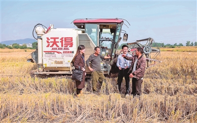 糧食安全是“國之大者”。安徽省含山縣紀(jì)委監(jiān)委聚焦高標(biāo)準(zhǔn)農(nóng)田建設(shè)管理中的突出問題開展一線走訪,推動“糧田”變“良田”。圖為該縣紀(jì)檢監(jiān)察干部在環(huán)峰鎮(zhèn)城北村水稻收割現(xiàn)場了解相關(guān)情況。歐宗濤 攝