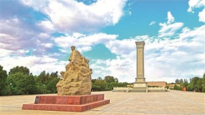 “血戰(zhàn)高臺”英雄群雕和中國工農紅軍西路軍烈士紀念碑。鄭耀德 攝