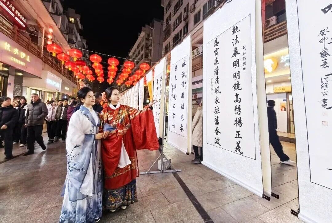 舟曲楹聯(lián)文化是省級非物質(zhì)文化遺產(chǎn),除元宵松棚楹聯(lián)燈會外,在“冬游舟曲•簪花迎春”冬春季文化旅游系列活動中,具有濃厚廉潔元素的楹聯(lián)書法作品亮相“西街七點半•文化大集市”,以墨香傳法韻、以文創(chuàng)載法理、以廉潔沁人心,使紀法知識和楹聯(lián)文化相互融合、交相輝映,讓廉潔文化“活”起來。