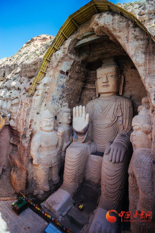 石窟藝術(shù)源于印度,隨佛教?hào)|傳,經(jīng)新疆傳入河西。五涼時(shí)期,自張軌始,尊崇篤信佛法。北涼沮渠蒙遜,亦好佛法,在涼州南山興鑿石窟,以天梯山石窟為代表的“涼州模式”諸多石窟,先后在河西地區(qū)開(kāi)鑿傳播,影響了中原石窟藝術(shù)風(fēng)格,成為石窟藝術(shù)神圣的殿堂。(武威市文體廣電和旅游局供圖)