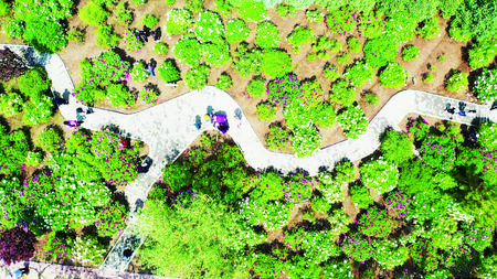 工人呂玉福告訴記者:“牡丹花朵里積存了大量雨水,如果不用繩子將牡丹捆綁,這些牡丹就會(huì)倒伏。”這些10年前栽植的牡丹,如今成為一道壯麗的城市景觀,形成了全長30公里的牡丹景觀帶。