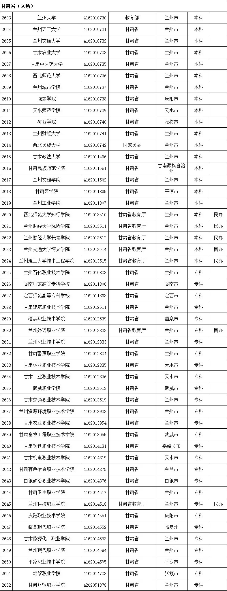 教育部發(fā)布2020全國高校名單 甘肅省共55所