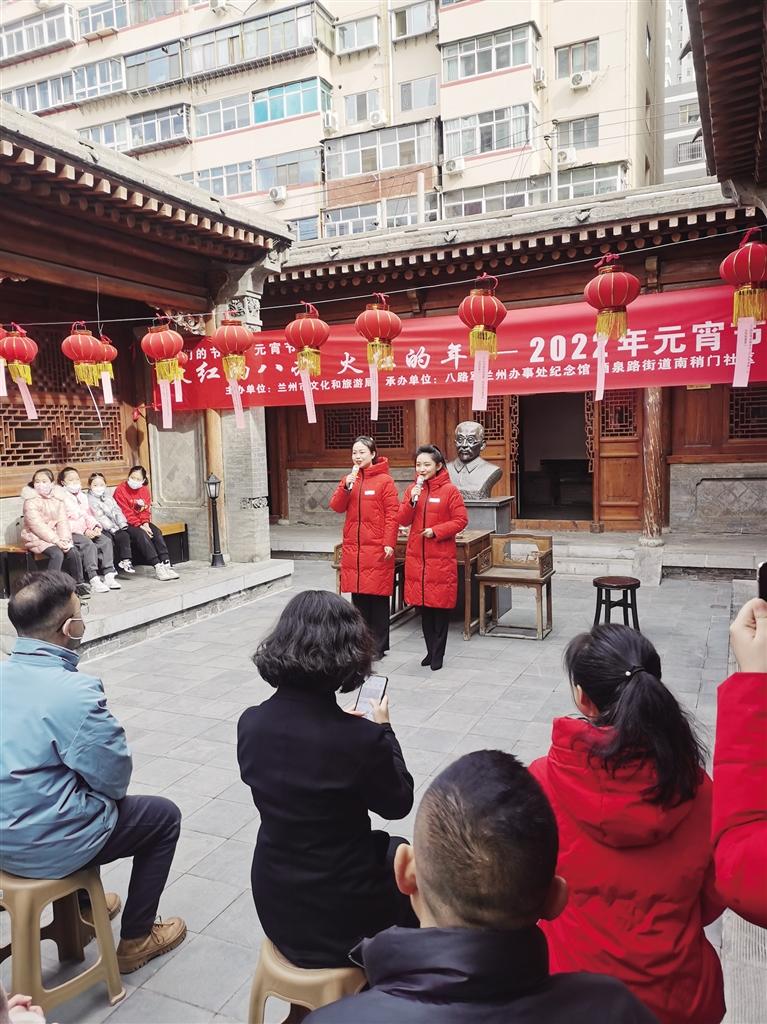2月14日,在喜迎元宵佳節(jié)之際,由蘭州市文化和旅游局主辦的“火紅的八辦火紅的年 民族團結(jié)一家親”——2022年元宵節(jié)主題活動在位于酒泉路的八路軍蘭州辦事處紀念館舉行。來自酒泉路街道南稍門社區(qū)、南關(guān)民族風味一條街的市民代表與蘭州八辦工作人員及紅色小志愿者近百余人齊聚一堂,共同“憶黨史、話冬奧、猜燈謎、慶元宵、唱紅歌”。
