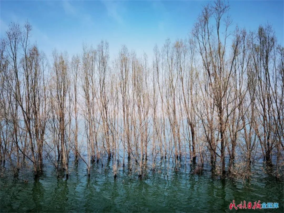 在岸邊,可以看到10公里的柳樹“站”在水中,根連著根,枝連著枝。這些高大的柳樹,不僅減緩了水面上襲來的風(fēng)浪,形成第一道保護(hù)“堤壩”,還成為一道亮麗的風(fēng)景線——倒映在湖面上的樹木婀娜多姿,鳥兒在樹杈上筑巢棲息,魚兒在樹下游玩,好一幅綿長的水鄉(xiāng)畫卷。