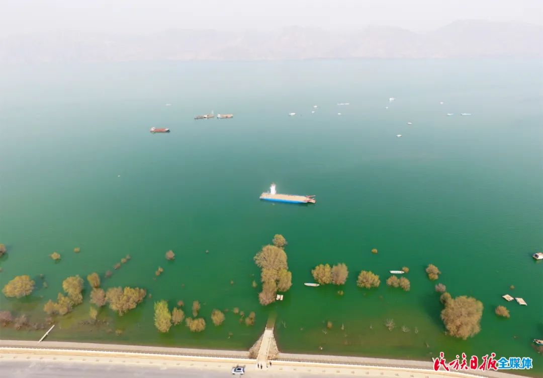 3月23日,記者來到庫區(qū)岸邊,遠(yuǎn)看,湖水湛藍(lán),輕舟游弋,水鳥嬉戲;近看,碧波蕩漾,水清見石,魚翔淺底。在人們的贊嘆聲中,湖面上劃過一艘小船,那是打撈清理黃河垃圾的清潔船。這艘船從早到晚,來回游動(dòng),及時(shí)清理著河面的垃圾。