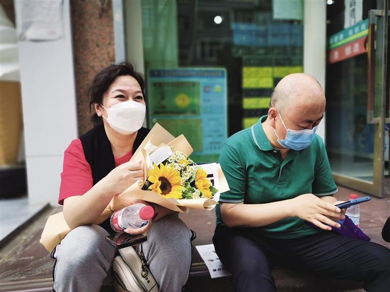 記者在等待的家長群里來回穿梭,發(fā)現(xiàn)給孩子送鮮花的家長可真不少,上前攀談,手捧向日葵的媽媽爽朗大方,她向記者解釋了送孩子向日葵的寓意:“我家的孩子是女孩,是蘭州一中的學生,我希望她考個好成績。向日葵的寓意就是‘一舉奪魁’。我們很緊張但是不敢表露出來,不能把這種情緒傳導給孩子。送她花,就是為了讓她心情好一些。”