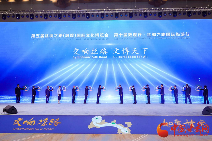 第五屆絲綢之路(敦煌)國際文化博覽會(huì)和第十屆敦煌行·絲綢之路國際旅游節(jié)于2021年9月24日—26日在甘肅省敦煌市隆重舉行。中共中央政治局委員、中央書記處書記、中宣部部長黃坤明以視頻形式出席開幕式暨高峰會(huì)議并發(fā)表主旨演講,300多名國外、國際組織及國內(nèi)省區(qū)市代表現(xiàn)場(chǎng)參加會(huì)議,400多萬網(wǎng)友線上參加有關(guān)活動(dòng)。大會(huì)以習(xí)近平新時(shí)代中國特色社會(huì)主義思想為指導(dǎo),認(rèn)真落實(shí)“一帶一路”倡議,以線上線下相結(jié)合的方式舉辦一系列主體活動(dòng),有力促進(jìn)絲路沿線各國文化交流與旅游合作,有效增進(jìn)文化認(rèn)同與情感共鳴,是一次展示中國文化自信、共商“一帶一路”建設(shè)、推動(dòng)文旅融合發(fā)展的盛會(huì),是一次提升甘肅對(duì)外影響力、展示開放新形象、凝聚發(fā)展新動(dòng)力的盛會(huì),得到了國際社會(huì)的廣泛贊譽(yù)和一致好評(píng)。