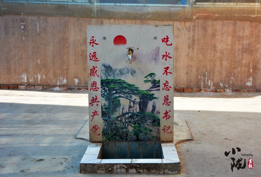 家家戶戶的井臺上,嵌著這樣的“感恩壁”,白色瓷磚兩側(cè),兩行紅彤彤的大字格外顯眼——“吃水不忘總書記,永遠感恩共產(chǎn)黨”。