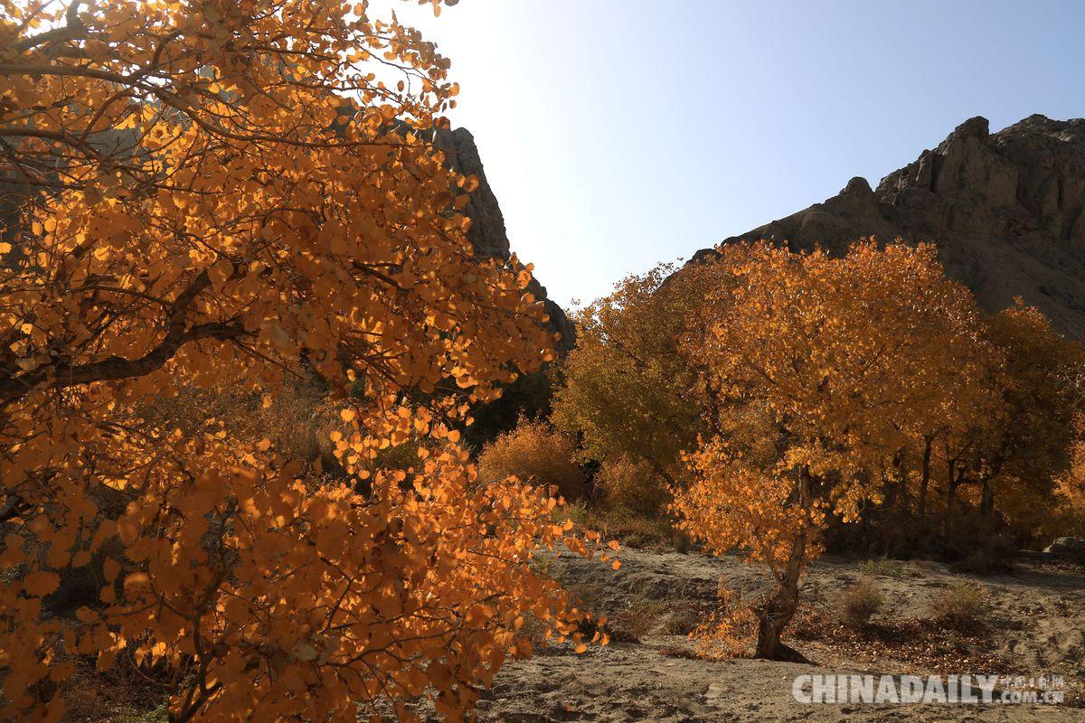 金秋十月,位于世界文化遺產(chǎn)敦煌市懸泉置遺址的懸泉谷內(nèi)的胡楊、蘆葦?shù)葮淠局脖槐磺锷秩荆吧绠?,美不勝收。?jù)介紹,甘肅省敦煌市懸泉置遺址緊靠三危山山口。因水從高臺流下,懸空入潭,故名懸泉,敦煌當(dāng)?shù)厝怂追Q“吊吊水”,又稱貳師泉。