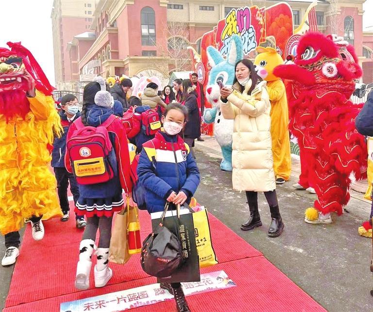 氣球、棒棒糖、筆記本……每一份開學(xué)小禮物都蘊藏著老師們深深的祝福和殷切的期望,打開這份開學(xué)禮,五彩斑斕的新學(xué)期已經(jīng)畫下了濃墨重彩的第一筆。猜燈謎、寫春聯(lián)、做花燈、觀看太平鼓表演、舞獅子、趣味套圈、扭秧歌……多姿多彩的迎接活動,將傳統(tǒng)文化與有益的游戲結(jié)合起來,營造出愉悅的開學(xué)氛圍。