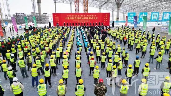 2月18日,蘭州中川國際機場三期擴建工程航站樓工程主體結構合攏活動暨沖刺動員會在甘肅蘭州新區(qū)舉行。圖為活動現(xiàn)場。 中新社記者 九美旦增 攝