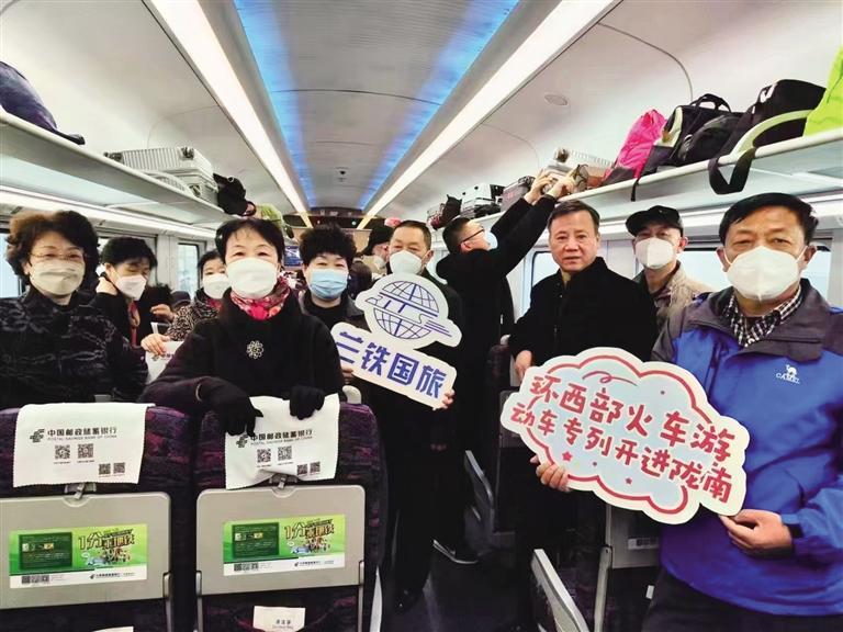 旅客乘坐“環(huán)西部火車游”列車開啟踏春之旅
