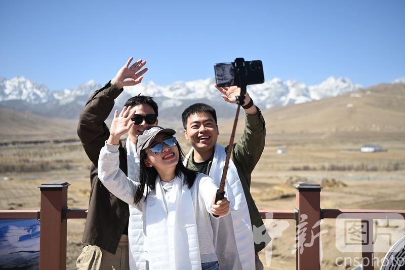 4月16日,甘肅省武威市天祝藏族自治縣,學(xué)生們在景區(qū)自拍留影。