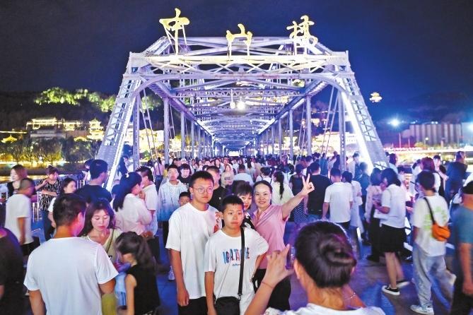 入夏以來,全國各地熱浪襲人,但絲路重鎮(zhèn)蘭州以23-26℃的平均氣溫成為各地游客消夏避暑勝地,外來游客涌入金城,尤其是暑假期間呈現出井噴式增長。依托中山橋、白塔山、黃河母親、黃河樓等重要旅游景點資源,黃河之濱成為外來游客打卡首選,“夜游黃河”“黃河頌·大有蘭州”光影秀火爆出圈,沿河茶攤、休閑茶吧、露營基地更是出現“一桌難求”的現象。