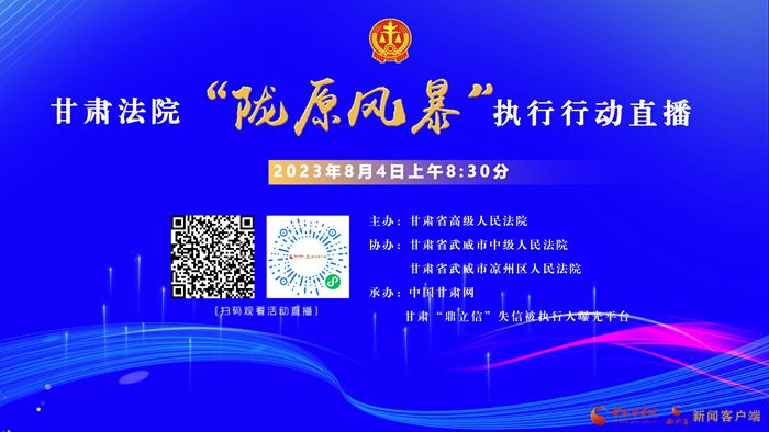 中國甘肅網、甘肅“鼎立信”失信被執(zhí)行人曝光平臺歡迎廣大網友積極關注直播活動,共同努力在全社會形成關注宣傳執(zhí)行、鼓勵自動履行、震懾拒不執(zhí)行的聲勢,助力法治甘肅、誠信甘肅建設邁上新臺階。