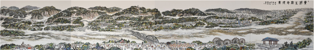 在《黃河之濱也很美》的長卷中,有黃河母親雕塑,有中山橋,有白塔,也有城市規(guī)劃館,有羊皮筏子也有疏通河道的船。