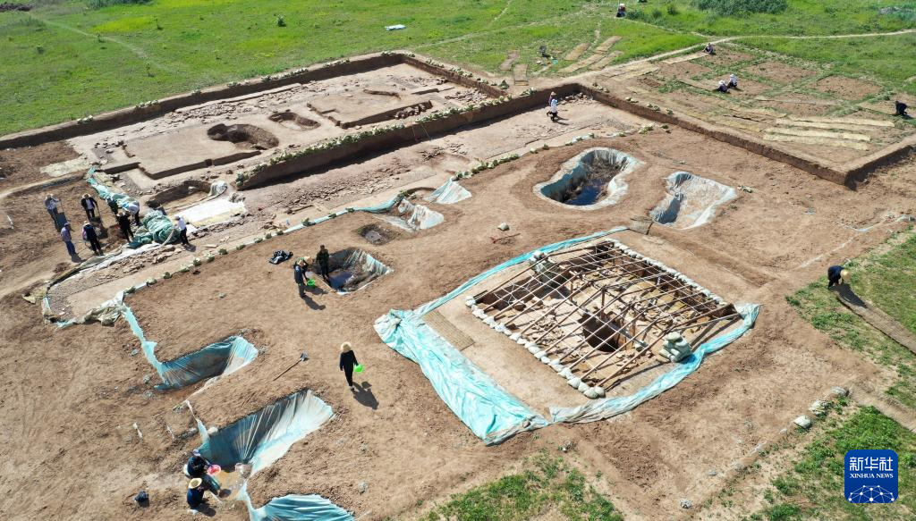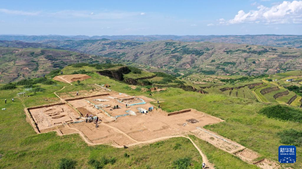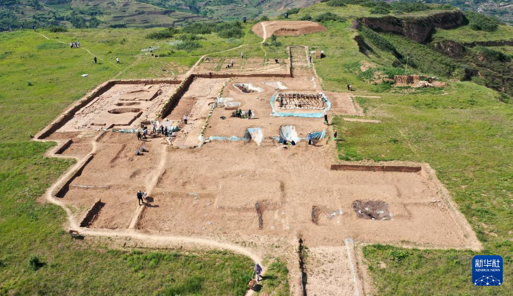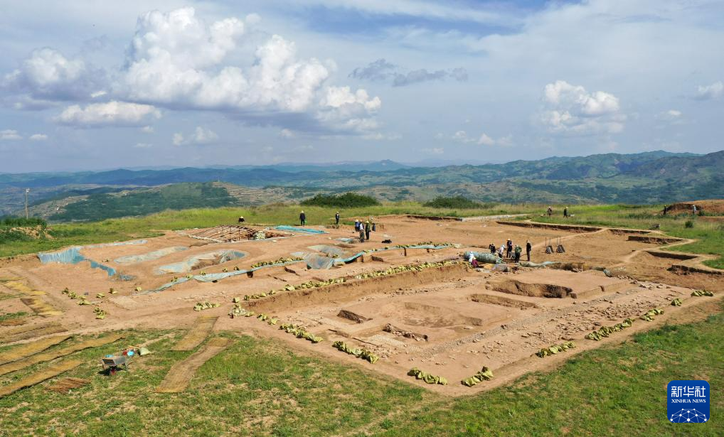 這是2022年6月10日拍攝的甘肅省隴南市禮縣四角坪遺址考古發(fā)掘現場(無人機照片)。新華社記者 陳斌 攝