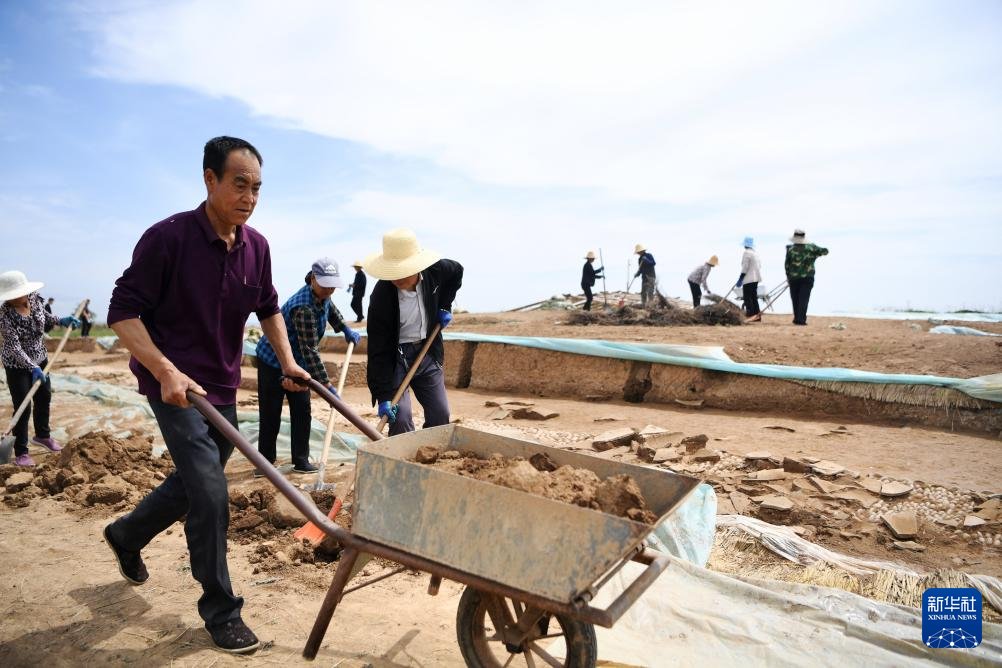 工作人員在甘肅省隴南市禮縣四角坪遺址考古發(fā)掘現場工作(2022年6月10日攝)。新華社記者 陳斌 攝