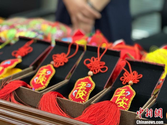 圖為發(fā)布會(huì)現(xiàn)場(chǎng)慶陽香包展示。楊娜 攝