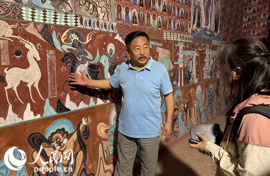 “左邊站著的是打窟人,右邊是畫工和塑匠,都是曾經(jīng)鑄就莫高窟輝煌的工種。”說(shuō)著話,尤路平手里的活一刻也沒耽擱。