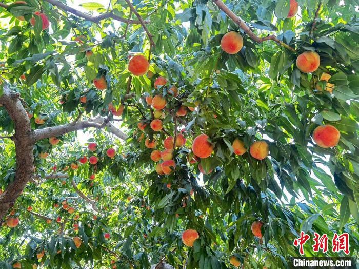 中新網(wǎng)蘭州7月31日電 (記者 閆姣)7月底,走進蘭州市城關(guān)區(qū)伏龍坪街道卓家溝村,陣陣果香撲鼻而來,粉嘟嘟的桃子掛滿枝頭。據(jù)當?shù)毓r(nóng)講述,這里的果蔬采用黃河水澆灌,加之地理位置特殊,所產(chǎn)水果水分足、口感好,常被“訂單式”銷售至周邊地區(qū)及上海、廣州、江蘇等地。