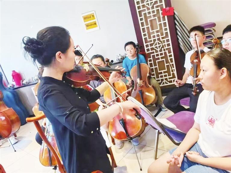 中國甘肅網(wǎng)8月26日訊 據(jù)(蘭州晨報(bào)報(bào)道 奔流新聞·蘭州晨報(bào)記者 裴強(qiáng))近日,教育部白名單競(jìng)賽“2023-2024學(xué)年全國青少年音樂素養(yǎng)大賽”全國總決賽在山東省濟(jì)南市閉幕。蘭州市少年宮交響樂團(tuán)弦樂分團(tuán)的20名學(xué)員經(jīng)過初賽、復(fù)賽層層選拔,以省賽一等獎(jiǎng)佳績代表蘭州市參加“2023-2024學(xué)年全國青少年音樂素養(yǎng)大賽”決賽,最終斬獲演奏類西洋樂團(tuán)合奏賽項(xiàng)中學(xué)組三等獎(jiǎng)。圖為學(xué)員們?cè)谂啪?/p>