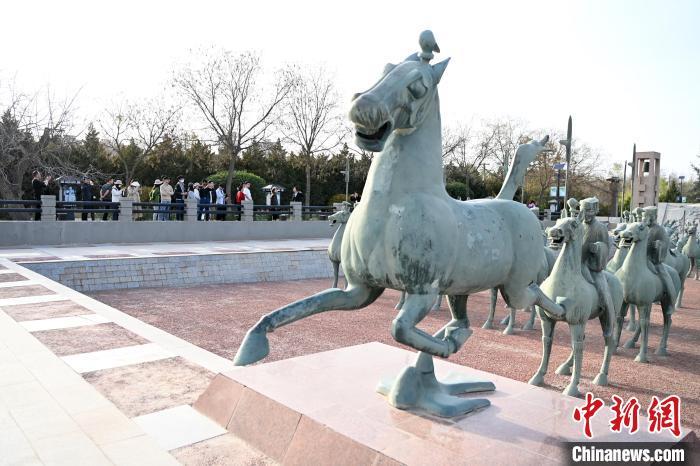 2024年4月17日,游客在中國(guó)旅游標(biāo)志“馬踏飛燕”出土地雷臺(tái)漢墓內(nèi)參觀。九美旦增 攝