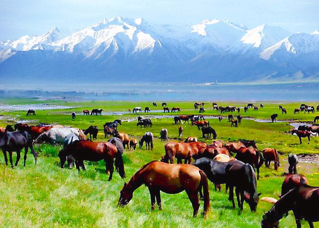 在碧草連天的谷地,當(dāng)?shù)芈糜尾块T擺放了一組白馬的大型雕塑,栩栩如生,它們要么仰天長(zhǎng)嘶,要么低首撫弄地上的青草,還有的彼此耳鬢廝磨,像是親密的戀人。